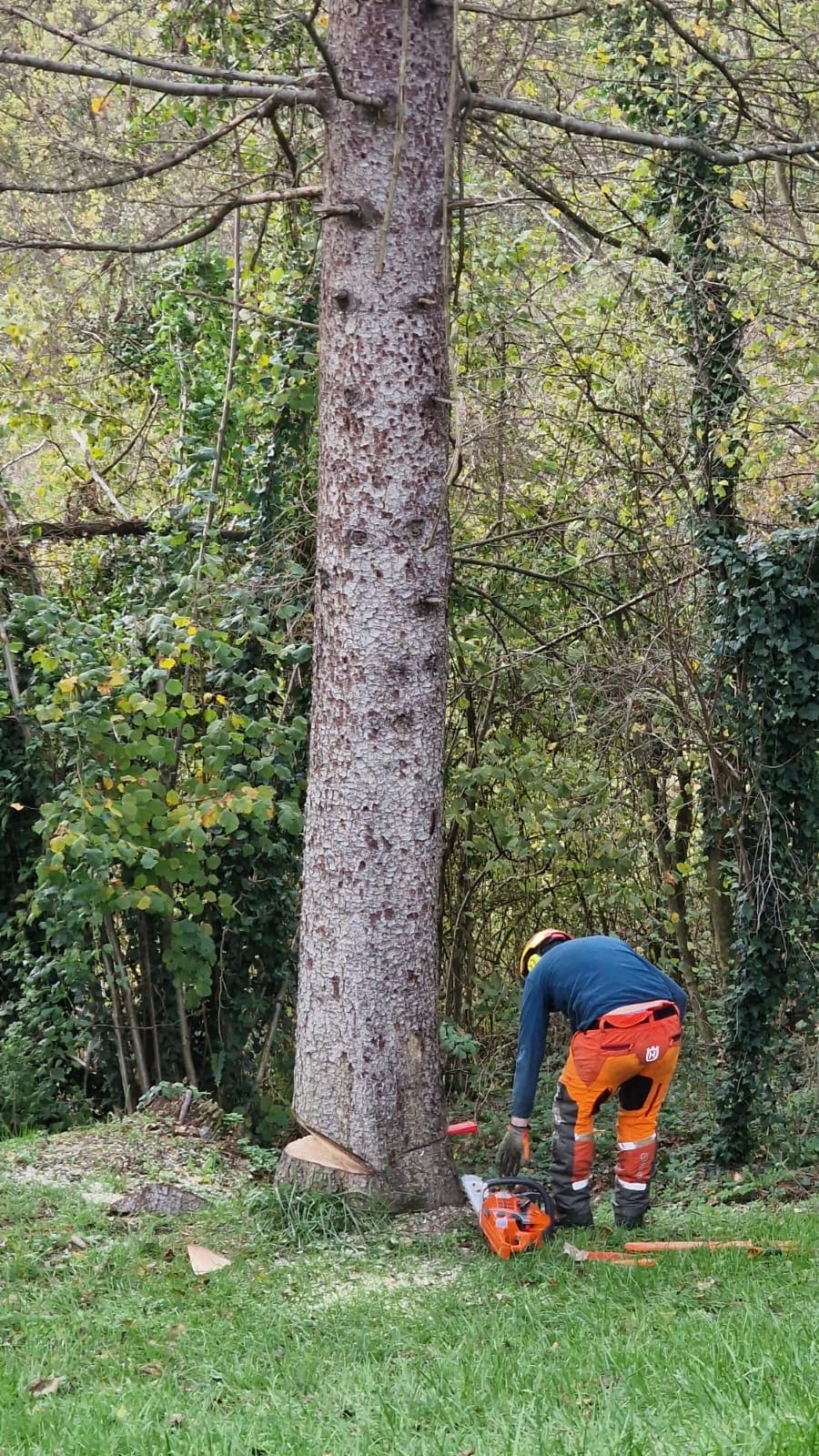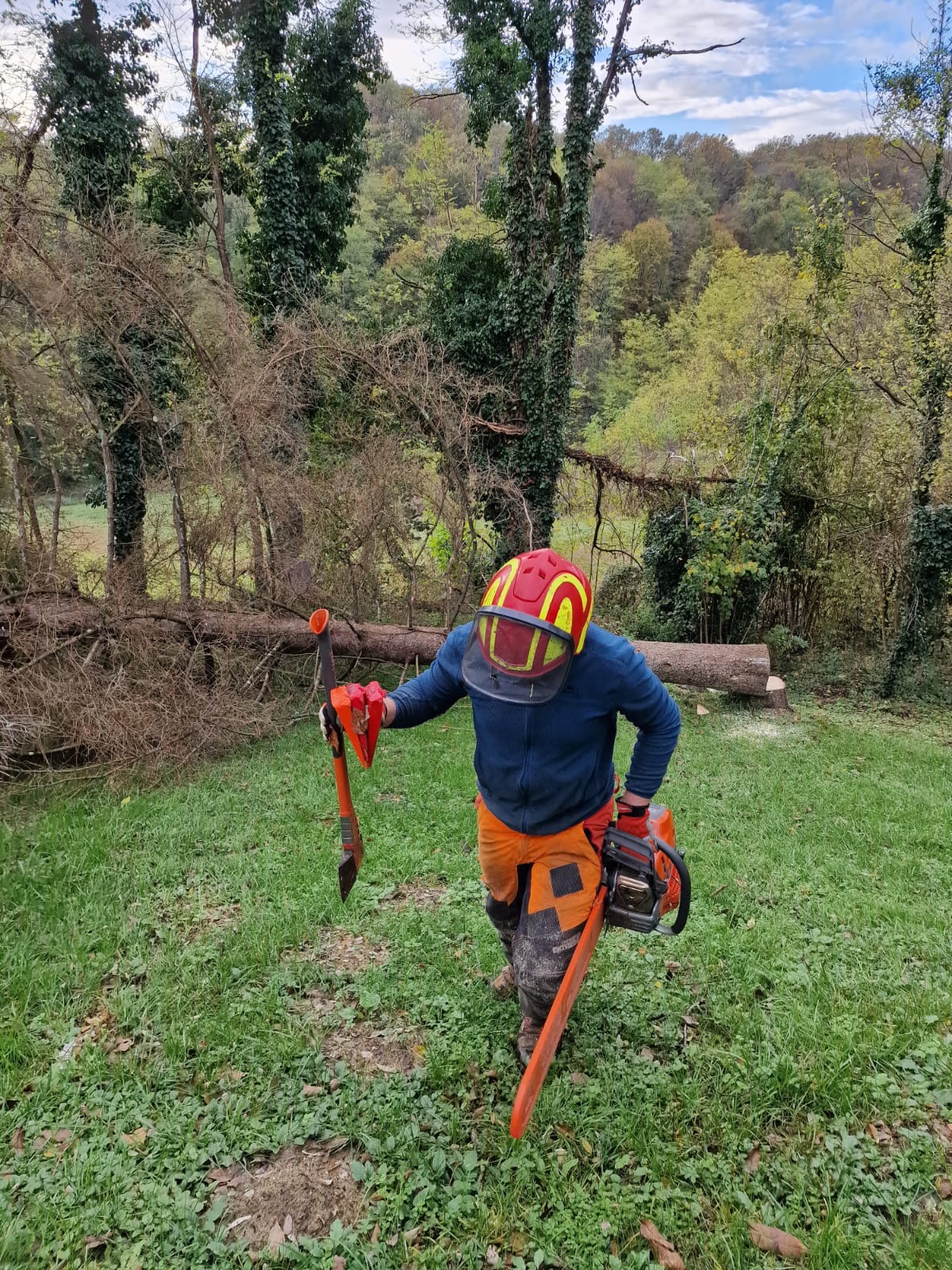 Vlasnik je bio zabrinut oko ove visoke suhe smreke koju je napao potkornjak i potpuno posusio. U blizini se nalazi vikendica koja se izdaje preko bookinga te je bio zabrinut da drvo ne padne na goste ili da se koja grana ne odlomi i napravi stetu i osteti tu prekrasnu vikendicu u Hrvatskom Zagorju. Na poziv sam reagirao odmah, na precizan i povoljan nacin sam otklonio drvo koje je prijetilo vikendici i ljudskim zivotima.